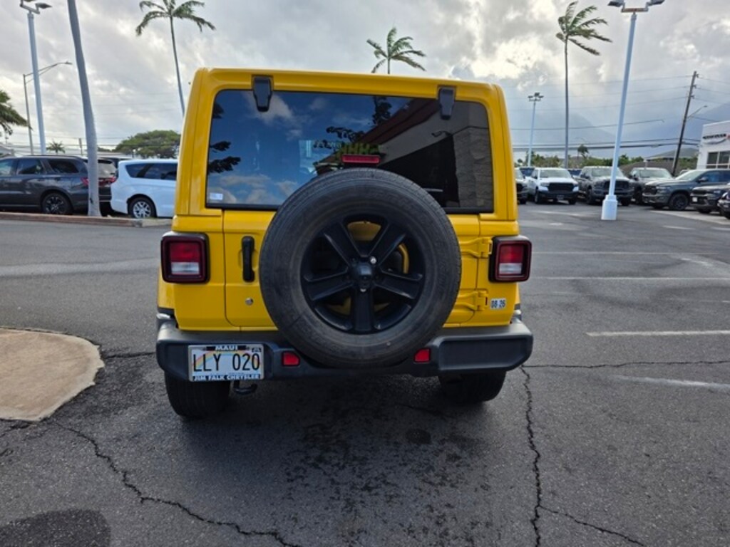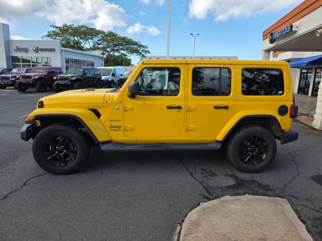 View this used 2020 Jeep Wrangler SUV Unlimited Sahara for sale at Jim Falk Chrysler Dodge Jeep Ram, serving the Kahului, Lahaina, Wailuku, and Makawao area with used Jeep Wrangler sales.